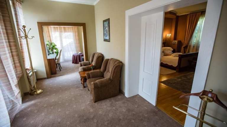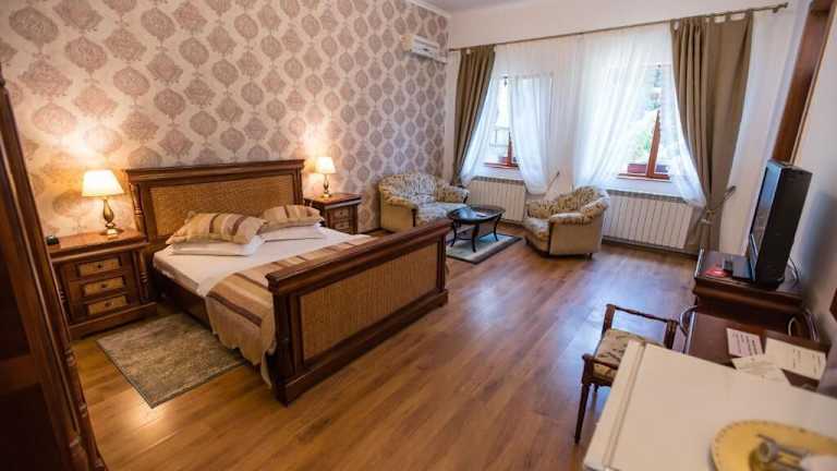Das Hotel Villa Venus in Deva ist eine zentral gelegene Unterkunft, nur 1 km südlich der Zitadelle von Deva und dem Bahnhof. Die geräumigen und klimatisierten Zimmer bieten modernen Komfort und Annehmlichkeiten wie Flachbild-Sat-TV und kostenfreies WLAN. Das Hotel verfügt über eine Sonnenterrasse und einen Whirlpool im Freien, in dem Sie sich entspannen können. Das Frühstück wird jeden Morgen serviert und in der Umgebung finden Sie eine große Auswahl an Bars und Restaurants. Der Wasserpark Aqualand ist ebenfalls in der Nähe.