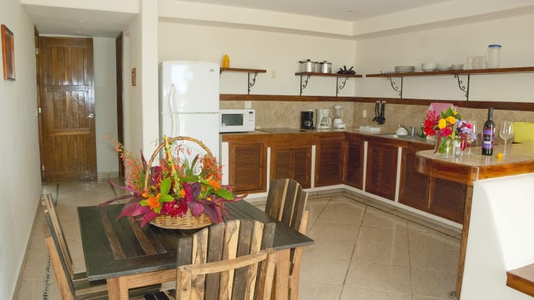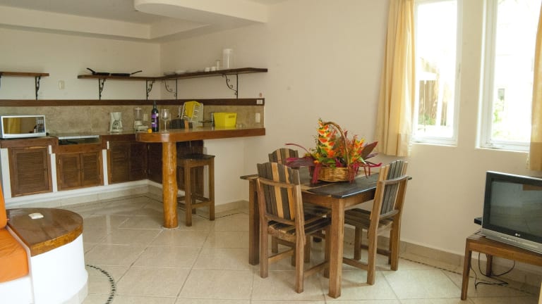 Das Hotel Villas Bakalar bietet eine idyllische Lage nur wenige Meter von der Lagune von Bacalar entfernt. Hier können Gäste inmitten wunderschöner Gärten und üppiger Vegetation entspannen und den Blick auf den Pool und die Lagune genießen. Die klimatisierten Suiten verfügen über eine gut ausgestattete Küche, ein eigenes Bad und eine Terrasse. Das Hotel bietet außerdem eine Snackbar und Sonnenliegen im Poolbereich. Die Mitarbeiter an der Rezeption helfen gerne bei der Organisation von Aktivitäten wie Kajakfahren und Bootsfahrten.