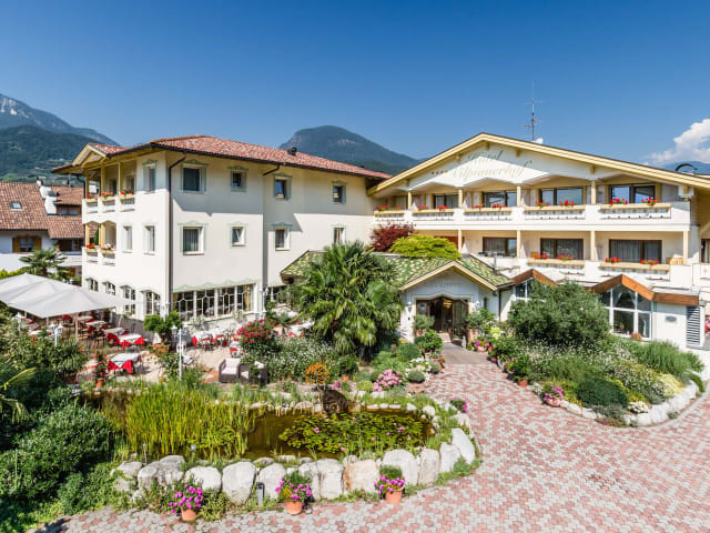 Das Hotel liegt zwischen Bozen und Meran im Herzen Südtirols im Wein- und Spargeldorf Terlan. Der Bahnhof Vilpian-Nals liegt 200 m vom Hotel entfernt. In jeweils 15 Autominuten erreichen Sie die Städte Bozen und Meran. Ihr Fahrzeug stellen Sie kostenlos in der Garage oder auf dem Parkplatz des Hotels ab.