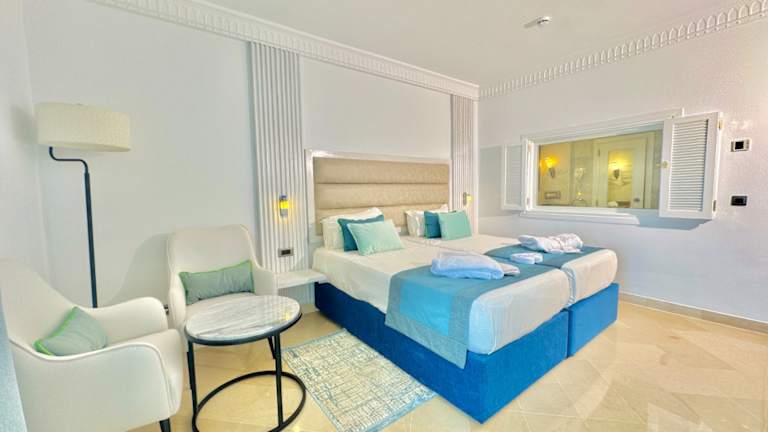 Die bequeme Ausstattung der Zimmer (Zweibettzimmer, Familienzimmer, Hochzeitssuite, Juniorsuite) gewährleistet den Reisenden einen angenehmen Urlaubsaufenthalt. Zu jedem Zimmer zählt ein Badezimmer. Im eigenen Bad gibt es für Sie eine Badewanne oder Dusche und einen Haartrockner. In jede Wohneinheit ist ein angenehmer Sitzbereich integriert. In jedem Zimmer befinden sich eine Minibar, ein Safe und ein Schreibtisch. Außerdem sind ein Telefon, ein Radio sowie ein Fernseher vorzufinden. Das Zimmerangebot enthält ebenso behindertenfreundliche Zimmer.