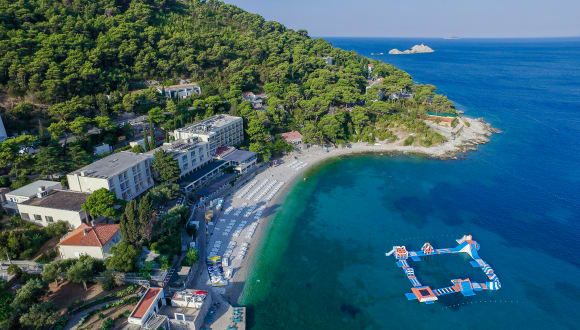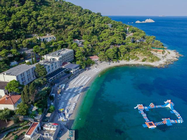 Das Hotel Vis liegt direkt am Kiesstrand in Dubrovnik und bietet somit eine erstklassige Lage für Strandliebhaber und Familien. Von hier aus können Sie die Promenade Stradun und die Altstadt von Dubrovnik bequem mit dem Bus in nur 15 Minuten erreichen. Die Umgebung des Hotels bietet eine atemberaubende Kulisse mit Blick auf das Meer und den Park.