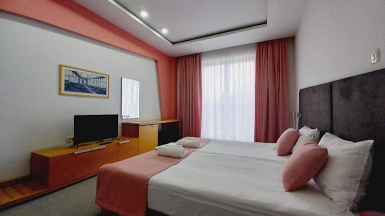 Das Hotel Vukov Most liegt in einer günstigen Lage, nur 1 km vom Stadtzentrum von Nikšić entfernt. In der Umgebung finden sich zahlreiche Sehenswürdigkeiten wie die Seen Krupac und Slansko, die beide innerhalb von 2 km erreichbar sind. Die Bushaltestelle befindet sich ebenfalls in der Nähe des Hotels. Der Flughafen Podgorica ist etwa 50 km entfernt und kann auf Wunsch gegen Aufpreis erreicht werden.