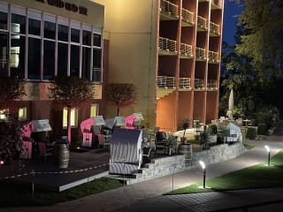 Sauna & Whirlpool stehen den Gästen des Hauses kostenfrei zur Verfügung. Bei einer Arrangementbuchung ab 7 Übernachtungen sind je nach Angebot folgende Leistungen inklusive: • Strandkorb (Eigener Strandabschnitt) • Fahrradverleih • Bungee-Trampoline • Banana-Bob • Tretboote • Kinderland am Strand • Billard-und Tischtennisraum • Fitnessraum