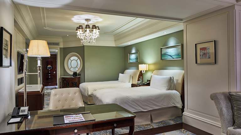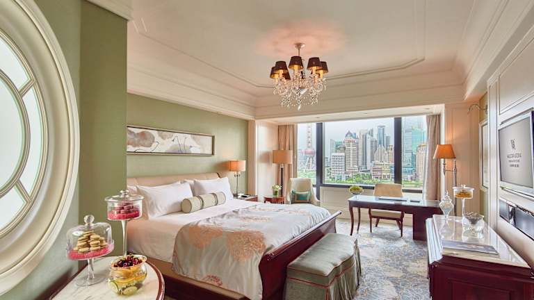 Die Zimmer im Waldorf Astoria Shanghai on the Bund bieten eine einzigartige Kombination aus dem Charme der alten Welt und modernem Komfort. Jedes Zimmer ist individuell gestaltet und verfügt über Annehmlichkeiten wie einen Flachbild-Kabel-TV, eine Nespresso-Kaffeemaschine und kostenloses WLAN. Die Marmorbäder sind mit Doppelwaschbecken, einer Badewanne und Pflegeprodukten von Ferragamo ausgestattet. Ein persönlicher Concierge steht den Gästen zur Verfügung und erfüllt jeden Wunsch, um den Aufenthalt unvergesslich zu machen.