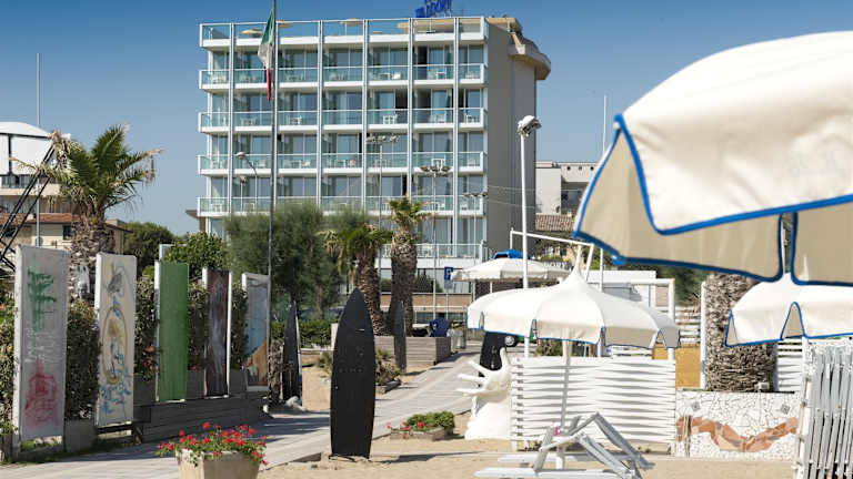 Das Waldorf Suite Hotel liegt im Viertel Marina Centro in Rimini und bietet eine ideale Lage direkt am Meer. Die Umgebung lädt zu Spaziergängen entlang der Promenade ein und bietet zahlreiche Restaurants, Bars und Geschäfte. Der Bahnhof Rimini ist in nur 15 Minuten zu Fuß erreichbar und der Freizeitpark Fiabilandia befindet sich in einer Entfernung von 6 km.
