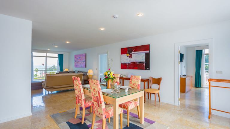Die geräumigen Suiten des Waterfront Suites Phuket by Centara verfügen über raumhohe Fenster, die Zugang zu einem eigenen Balkon bieten. Jede Suite ist individuell gestaltet und verfügt über eine gut ausgestattete Küchenzeile und ein großes Badezimmer mit Badewanne. Nach einem langen Tag am Strand können Sie im Dampfbad und der Sauna entspannen. Weitere Annehmlichkeiten umfassen ein Spielezimmer, einen Außen-Whirlpool und ein voll ausgestattetes Fitnesscenter.