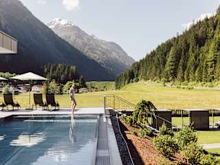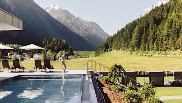 Das Hotel liegt nur unweit entfernt vom Ort Feichten, mitten im Grünen, umgeben von der Samnaungruppe und der Ötztaler Alpen, im Kaunertal.