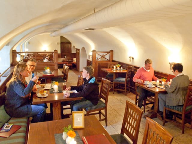 Unsere Restaurants bieten Ihnen ganztägig frisch zubereitete Speisen von internationaler Küche bis hin zu traditionellen, erzgebirgischen Spezialitäten. Deftige erzgebirgische Spezialitäten sowie gutbürgerliche Küche erwarten Sie in unserem rustikalen Gewölbekeller. Eine stilvolle Lobby mit angeschlossener Bar lädt ganztägig zum Verweilen ein. Im Sommer begrüßen wir unsere Gäste auf der Sonnenterrasse.