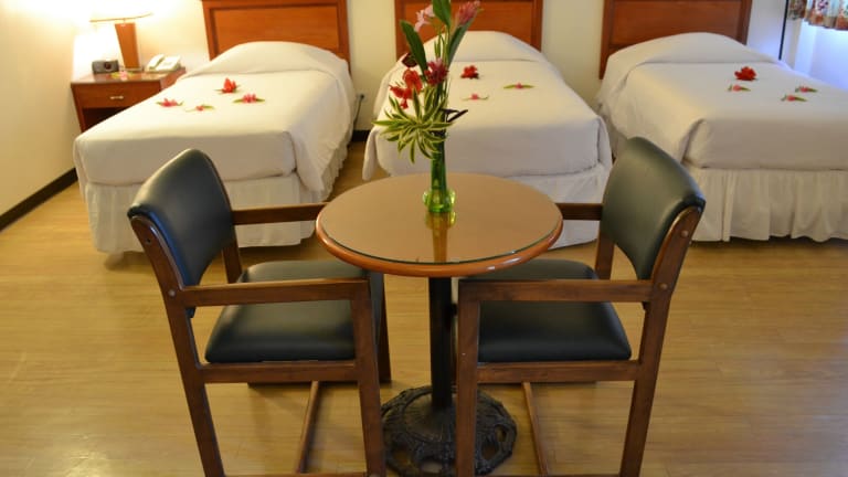 Das West Plaza Malakal auf der Insel Malakal bietet komfortable Unterkünfte mit Kabel-TV und einem Kühlschrank. Die Lage des Hotels ist ideal, da es sich nur wenige Gehminuten von Geschäften mit Tauchzubehör und dem Ausgangspunkt vieler beliebter Touren durch Koror entfernt befindet. Eine Autovermietung steht den Gästen ebenfalls zur Verfügung. Das Hotel bietet auch eine Vielzahl von Annehmlichkeiten, darunter eine Terrasse, eine voll ausgestattete Küche und Strandtücher. Im Tourenschalter können Gäste Tauchgänge, Angeltouren, Ausflüge zum Wasserfall und Massagen buchen. Das Bistro Palm Bay auf der anderen Straßenseite bietet eine Vielzahl von Gerichten, darunter auch Speisen aus dem pazifischen Raum und asiatische Küche. In der Umgebung gibt es auch mehrere Bars und Restaurants, die zu Fuß erreichbar sind.