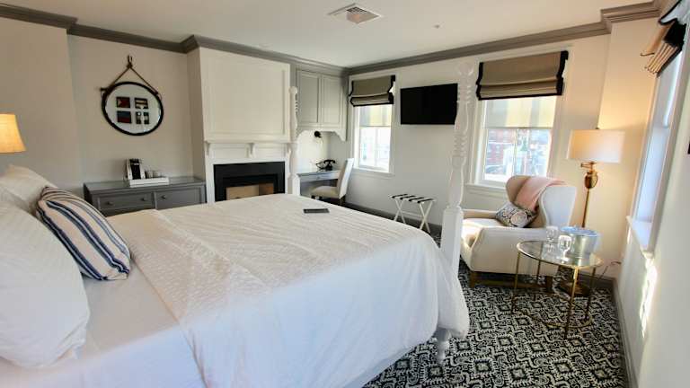 Das Mystic Whaler's Inn bietet individuell gestaltete Zimmer, die mit dunklen Holzmöbeln und komfortablen Betten ausgestattet sind. Jedes Zimmer verfügt über eine Tuft & Needle Matratze und einen Arbeitsplatz. Einige Zimmer bieten zudem einen Kamin, der für eine gemütliche Atmosphäre sorgt.