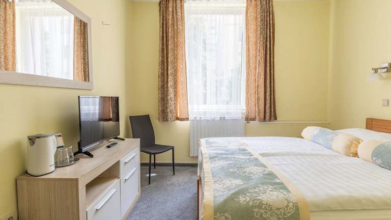Die Zimmer im Hotel Wilhelm bieten Komfort und eine gemütliche Atmosphäre für Ihren Aufenthalt in Prag. Jedes Zimmer verfügt über Annehmlichkeiten wie kostenfreies WLAN, Sat-TV, einen Sitzbereich und ein eigenes Badezimmer mit Dusche. Die Zimmer sind geschmackvoll eingerichtet und bieten Ihnen den perfekten Rückzugsort nach einem Tag voller Erkundungen in der Stadt.
