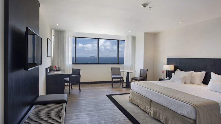 Das Windsor Leme Hotel bietet moderne Zimmer mit Klimaanlage, einem TV und einer Minibar. Die Zimmer sind elegant mit Holzmöbeln und modernem Dekor eingerichtet und einige bieten eine herrliche Aussicht auf den Atlantik. Die Unterkünfte bieten Ihnen den Komfort und die Annehmlichkeiten, die Sie für einen angenehmen Aufenthalt benötigen.