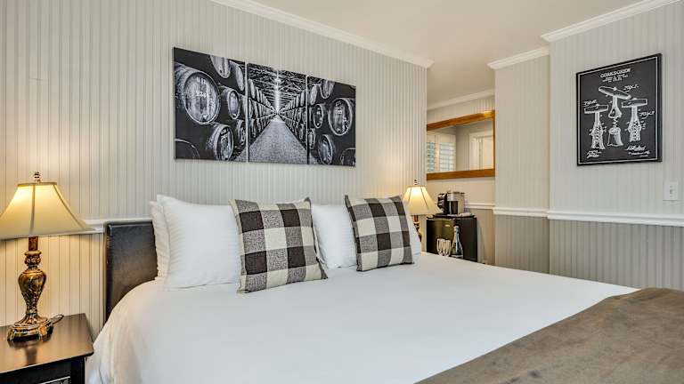 Das Calistoga Wine Way Inn ist ein charmantes historisches Gasthaus, das sich neben der Innenstadt von Calistoga befindet und nur 5 Fahrminuten vom renommierten Weingut Chateau Montelena entfernt ist. Die individuell eingerichteten Zimmer mit amerikanischen und englischen Antiquitäten bieten den Gästen eine gemütliche und einladende Atmosphäre. Genießen Sie kostenlose Snacks, süße Leckereien und Getränke in Ihrem Zimmer und entspannen Sie im Wohnzimmer mit Kamin oder auf der Außenterrasse mit Blick auf den Garten und den beeindruckenden Mount St. Helena. Das Gasthaus bietet zudem einen kostenlosen Shuttleservice zu verschiedenen Weingütern in Calistoga, darunter auch das berühmte Castello di Amorosa.