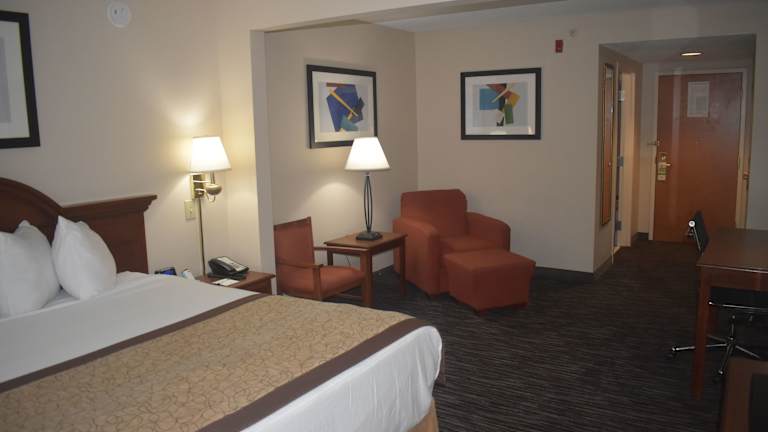 Das Hotel Wingate by Wyndham Charlotte Airport bietet seinen Gästen einen angenehmen Aufenthalt mit kostenlosem Flughafentransferservice, kontinentalem Frühstück und kostenfreiem WLAN. Die Zimmer sind gut ausgestattet und verfügen über Annehmlichkeiten wie eine Mikrowelle, einen Minikühlschrank und einen Flachbild-Kabel-TV. Das Hotel bietet auch einen rund um die Uhr geöffneten Fitnessraum und kostenlose Parkmöglichkeiten. Die Lage des Hotels in Charlotte ist ideal für Reisende, da es sich in der Nähe des internationalen Flughafens und vieler Restaurants und Attraktionen befindet.