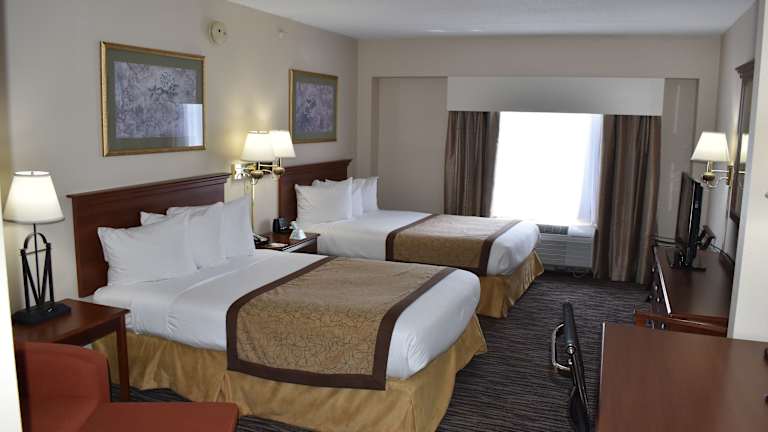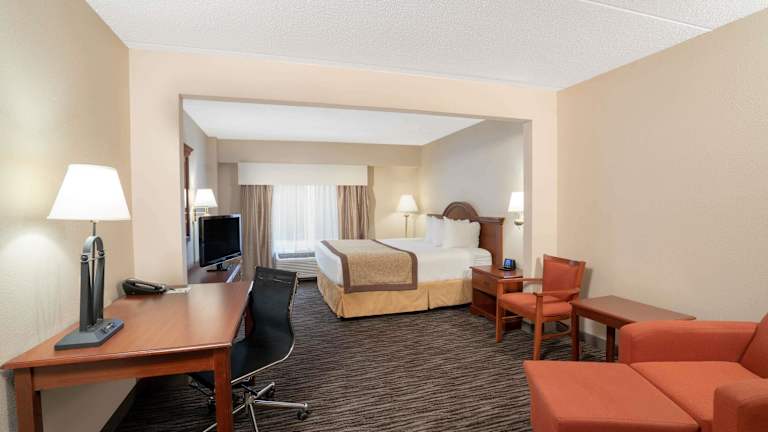 Das Hotel Wingate by Wyndham Charlotte Airport verfügt über 85 Zimmer auf 5 Etagen. Die Zimmer sind komfortabel und verfügen über Annehmlichkeiten wie eine Klimaanlage, individuell regelbare Heizung, einen Safe und eine Kochnische mit Mikrowelle, Kühlschrank und Kaffeemaschine. Zur weiteren Ausstattung gehören ein Fernseher, WLAN und ein Badezimmer mit Dusche oder Badewanne und Haartrockner.