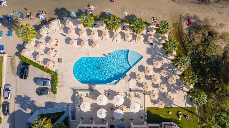 Das Xenos Kamara Beach ist ein Strandhotel in Argassi, das Ihnen geräumige Apartments zur Selbstverpflegung bietet. Hier können Sie sich entspannen und die Sonne auf der am Meer liegenden Terrasse mit Pool und Poolbar genießen. Die Apartments verfügen über Meerblick, Poolblick oder Gartenblick und sind mit hochwertigen Matratzen und Kissen von COCO-MAT ausgestattet. Zur Ausstattung gehören auch eine Küche und ein Essbereich. Morgens können Sie ein Frühstück im Hotel genießen und den ganzen Tag über Getränke und Snacks an der Poolbar erhalten. WLAN ist in allen Bereichen kostenlos verfügbar. Es gibt auch ein Spielezimmer mit Billard und Tischtennis sowie eine klimatisierte Loungebar mit TV. Das Hotel liegt nur 5 Gehminuten von Restaurants, Geschäften und Bars in Argassi entfernt.