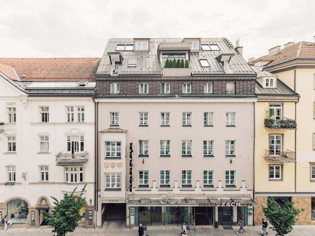 Das Hotel Zach befindet sich in einer ruhigen Seitenstraße in der Nähe der Innsbrucker Altstadt. Innerhalb von 5 Gehminuten erreichen Sie die Altstadt und den Hauptbahnhof. Die Lage ist ideal, um die Stadt zu erkunden und die Sehenswürdigkeiten zu besichtigen. In unmittelbarer Nähe des Hotels finden Sie verschiedene Geschäfte und Supermärkte sowie das Kaufhaus Tyrol, das nur 1 Gehminute entfernt ist.