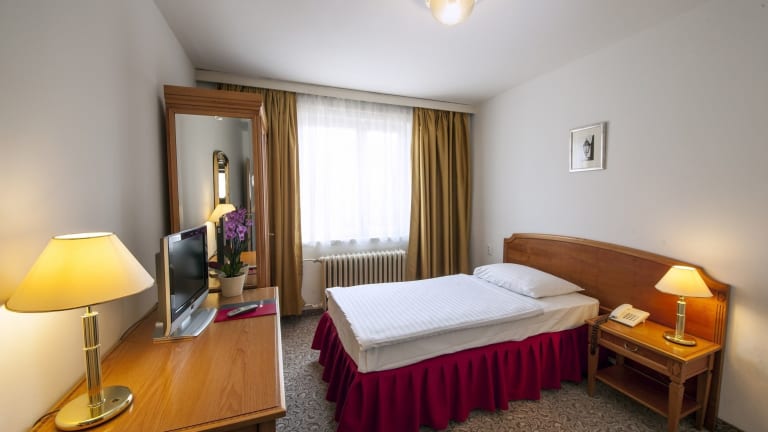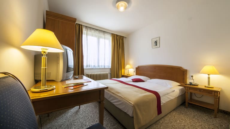 Das Hotel verfügt über 48 Zimmer, die mit grundlegenden Annehmlichkeiten wie Telefon, TV-Gerät und WLAN ausgestattet sind. Die Zimmer bieten den Gästen Komfort und Gemütlichkeit während ihres Aufenthalts.