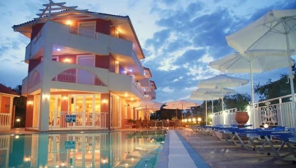 Verbringen Sie Ihren Urlaub im Pantheon Hotel auf der Insel Zakynthos und genießen Sie die entspannte Atmosphäre inmitten der grünen Natur. Das Hotel bietet komfortable Zimmer mit Balkon und Blick auf den Pool, den Garten oder das Ionische Meer. Entspannen Sie am Pool oder erkunden Sie die Umgebung mit dem Fahrrad oder dem Auto, das Sie im Hotel mieten können. Das Restaurant serviert köstliche griechische Gerichte und die Hotelbar lädt zum Verweilen ein. Das freundliche Personal steht Ihnen jederzeit zur Verfügung und hilft Ihnen gerne bei der Organisation von Ausflügen.