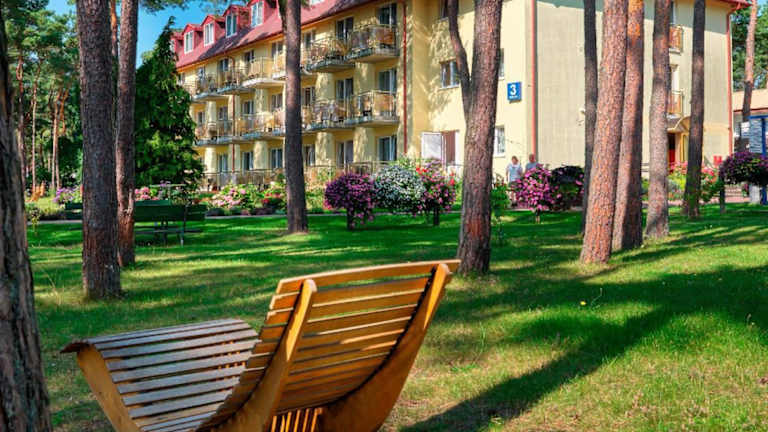 Das Zdrowotel Łeba ist der perfekte Ort für einen erholsamen Urlaub inmitten der Natur. Die Nähe zum Strand und die umliegende Pinienwaldkulisse sorgen für eine idyllische Atmosphäre. Hier können Sie sich bei Massageanwendungen verwöhnen lassen und die Grillmöglichkeiten nutzen. Die Zimmer bieten kostenlosen Internetzugang und einen TV, sowie einen Wasserkocher und teilweise einen Kühlschrank. Das Frühstücksbuffet im Speisesaal lässt keine Wünsche offen und auf Anfrage werden auch Gerichte für spezielle Ernährungsbedürfnisse angeboten. Das freundliche Personal an der Rezeption steht Ihnen rund um die Uhr zur Verfügung und organisiert gerne einen Shuttleservice. Auch für Kinder gibt es einen sicheren Spielplatz. Das Zdrowotel Łeba liegt nur 2,5 km vom Zentrum von Łeba und dem See Jezioro Sarbsko entfernt, der Bahnhof Łeba ist in 3 km erreichbar.