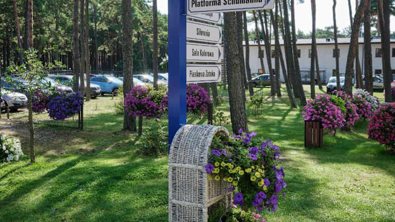 Das Zdrowotel Łeba hat eine fantastische Lage, nur 150 m vom wunderschönen Sandstrand entfernt und umgeben von einem malerischen Pinienwald. Die idyllische Umgebung lädt zu entspannten Spaziergängen und Aktivitäten im Freien ein. Łeba, das nur 2,5 km entfernt ist, bietet eine charmante Altstadt und den See Jezioro Sarbsko, der weitere Freizeitmöglichkeiten bietet. Der Bahnhof Łeba ist ebenfalls in kurzer Entfernung erreichbar, so dass Sie bequem die Region erkunden können.
