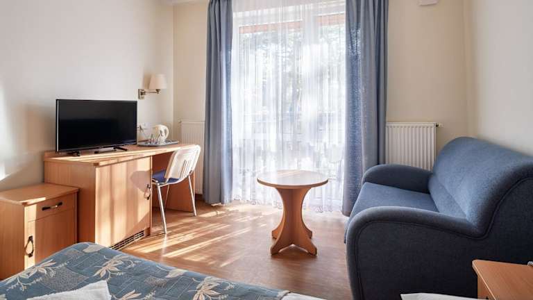 Im Zdrowotel Łeba erwarten Sie komfortable Zimmer, die allen modernen Bedürfnissen gerecht werden. Jedes Zimmer verfügt über kostenlosen Internetzugang und einen TV, um Ihnen einen angenehmen Aufenthalt zu ermöglichen. Ein Wasserkocher und ein Balkon gehören ebenfalls zur Ausstattung jedes Zimmers. Einige Zimmer bieten auch einen Kühlschrank und einen separaten Sitzbereich, um Ihnen noch mehr Komfort zu bieten.