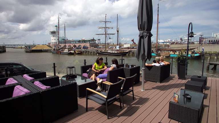 Das Hotel Zeezicht liegt direkt am Hafen von Harlingen und bietet einen spektakulären Blick auf das Wattenmeer. Die Terrasse am Wasser lädt zum Entspannen und Genießen der malerischen Umgebung ein. Das Hotel befindet sich neben dem Fährterminal, von dem aus Boote nach Terschelling und Vlieland fahren. Der Bahnhof Harlingen-Haven ist nur 5 Gehminuten entfernt, so dass Sie bequem mit dem Zug anreisen können.