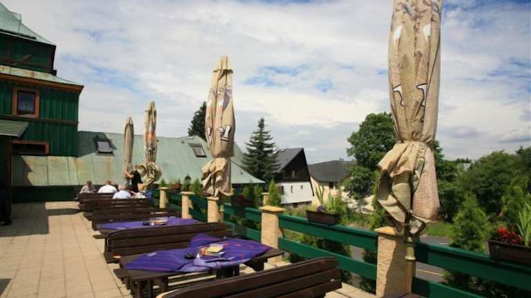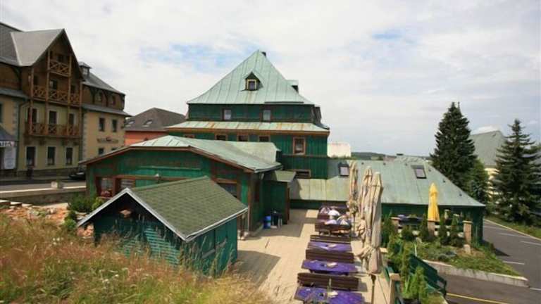 Das Hotel Zelený Dům liegt im Zentrum des malerischen Dorfes Boží Dar im Erzgebirge. Es befindet sich nur 150 m von den Skipisten entfernt und bietet somit eine ideale Lage für Skifahrer und Snowboarder. Das Dorf selbst ist von einer wunderschönen Natur umgeben und bietet zahlreiche Möglichkeiten für Outdoor-Aktivitäten wie Wandern, Radfahren und Nordic Walking. In der Umgebung gibt es auch viele Sehenswürdigkeiten zu entdecken, darunter historische Gebäude und charmante Dörfer.