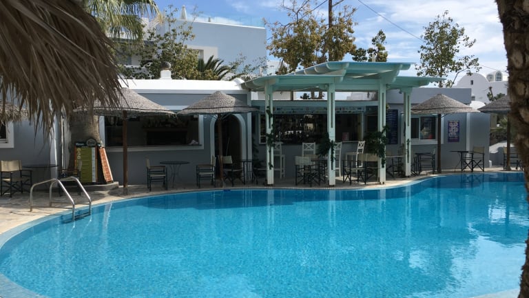 Das Zephyros Hotel verfügt über einen wunderschönen Garten, in dem Sie sich entspannen und die Sonne genießen können. Der erfrischende Pool bietet eine willkommene Abkühlung an heißen Tagen. Nutzen Sie die Gelegenheit, sich im Wasser zu erfrischen oder auf einer Liege am Pool zu entspannen. In der Umgebung gibt es auch eine Vielzahl von Freizeitaktivitäten, darunter Wassersport am Strand von Kamari oder Ausflüge zu den nahegelegenen Sehenswürdigkeiten und Attraktionen.