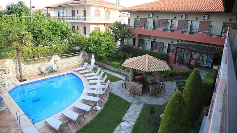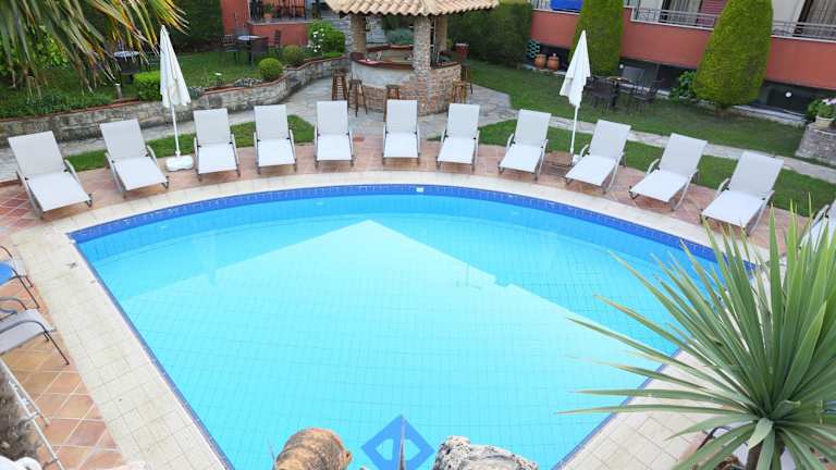 Im Hotel Zeus können Sie sich am Außenpool entspannen und eine erfrischende Abkühlung genießen. Für Kinder gibt es einen separaten Kinderpool.