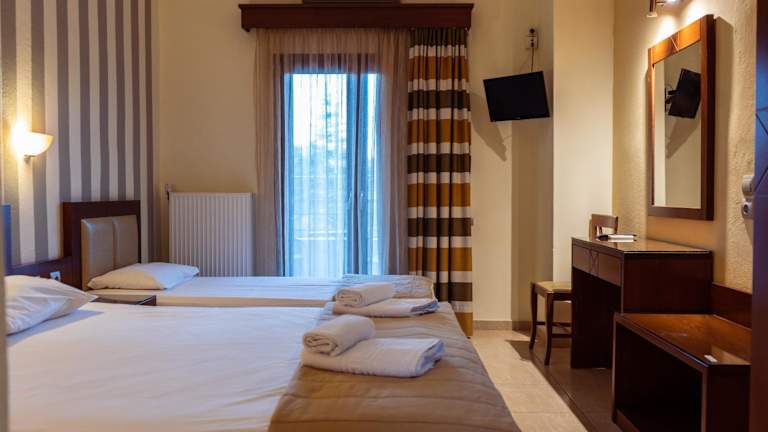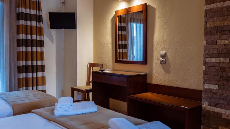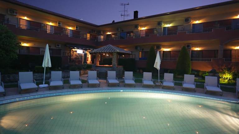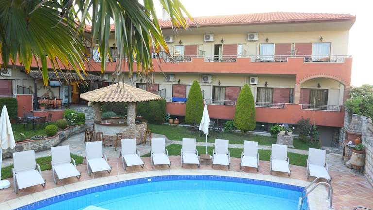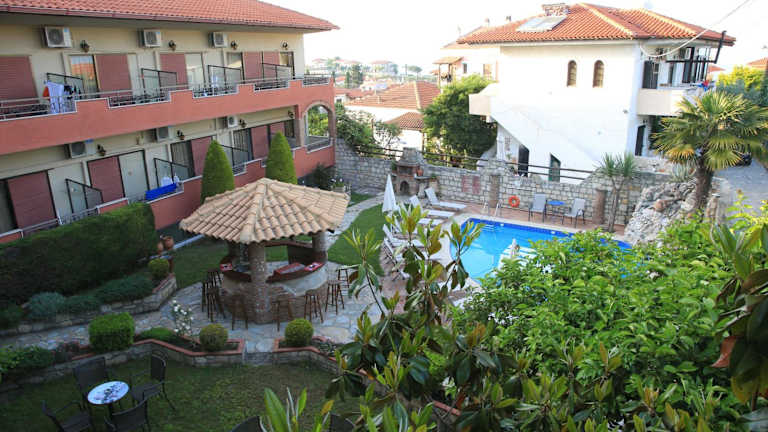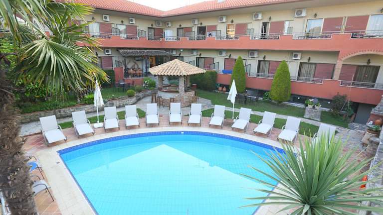 Das Hotel Zeus befindet sich im traditionellen Dorf Afytos in Chalkidiki, nur 10 Gehminuten vom Strand entfernt. In der Umgebung finden Sie Bars, Tavernen und Geschäfte, die zu Fuß erreichbar sind. Der Badeort Kallithea ist 3,5 km entfernt und der beliebte Ort Sani erreichen Sie nach 15 km. Der Flughafen ist etwa 78 km entfernt.
