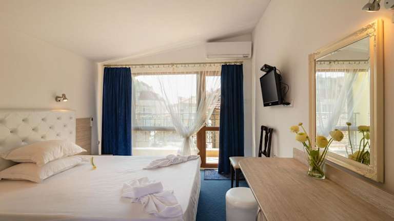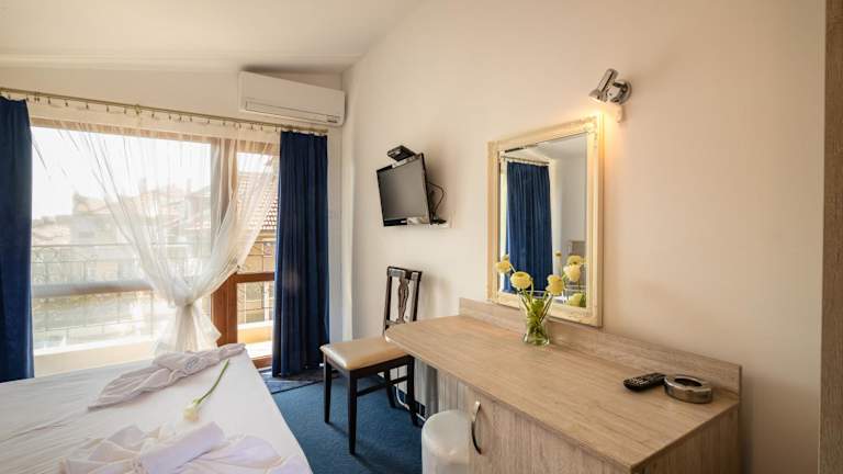 Das Hotel Zeus liegt zentral in der Altstadt von Pomorie und ist nur 5 Gehminuten vom nächsten Strand entfernt. Der Flughafen Burgas ist etwa 9,3 km entfernt. In der Umgebung des Hotels finden Sie das städtische Sanatorium für Heilschlamm-Anwendungen am Pomorie-See, ein Naturschutzgebiet und den zentralen Platz von Pomorie. Die nächste Bushaltestelle ist ebenfalls in der Nähe.