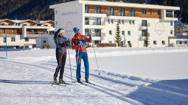 Gleich am Ortseingang von Galtür begrüßt Sie unser frisch renoviertes Hotel Zontaja. Genießen Sie Ihre schönste Zeit im Jahr, in einem der schönsten Häuser von Galtür. Einfach nur gemütlich und bequem, zum Wohlfühlen und die Seele baumeln lassen! Das Auto braucht man hier im Urlaub sowieso nicht mehr. Die Langlaufloipe führt direkt am Hotel in Galtür vorbei und vor dem Zontaja bleibt der kostenlose Bus stehen. Der bringt Sie entweder in den Nachbarort Ischgl oder ins Skigebiet von Galtür, den Silvapark. Alles hier ist schön übersichtlich und ruhig, ideal für Familien und Genießer mit Niveau eben. Erleben Sie die Berglandschaft der Silvretta im Winter. In Galtür erwartet Sie ein Winterurlaub der Extraklasse. Das Skigebiet Silvapark Galtür verfügt über abwechslungsreiche Pisten und gilt als eines der schneesichersten Winter-Resorts in den Alpen. Der Silvapark bietet Ihnen Erlebnisskifahren für jedes Interesse. Die einzelnen Sektoren sind auf die unterschiedlichen Bedürfnisse der Skifahrer, Snowboarder und nordischen Wintersportler sowie Kinder abgestimmt. Aus der Küche kommen hauptsächlich Schmankerln aus der Region und wann immer es geht auch aus biologischer Landwirtschaft. Fühlen Sie sich wohl, fühlen Sie sich willkommen! Hier bei uns im Zontaja.