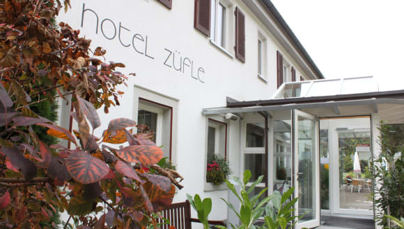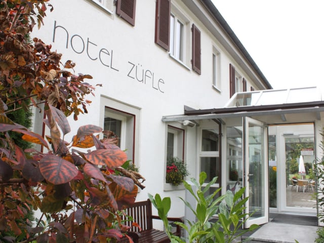 Das Hotel Züfle wurde gegründet im Jahre 1895. Nach komplettem Umbau im Jahr 2004 neu eröffnet bietet es seinen Gästen heute: 20 Doppelzimmer, 3 Ferienwohnungen für bis zu 4 Personen mit Küche, 2 Suiten, Restaurant mit Wintergarten für Veranstaltungen, Terrasse, Wellnessbereich mit Pool, 3 Saunen, 2 Tagungsräume, kostenlose Parkplätze, kostenloses W-LAN.