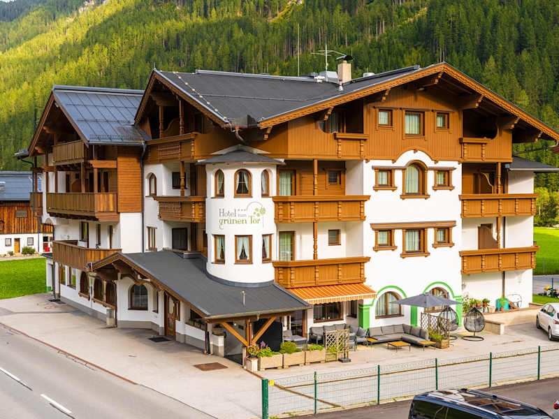 Das Hotel zum grünen Tor in Juns im Tuxertal ist der ideale Ort für einen erholsamen Aufenthalt mit Panoramablick auf den Hintertuxer Gletscher. Die geräumigen Zimmer bieten allen Komfort und verfügen über einen Balkon mit herrlichem Bergblick. WLAN nutzen Sie kostenfrei und Privatparkplätze stehen ebenfalls zur Verfügung. Die Lage des Hotels ermöglicht es Ihnen, die umliegende Natur zu erkunden, sei es beim Skifahren im Skigebiet Zillertal 3000 oder beim Wandern in der malerischen Umgebung.