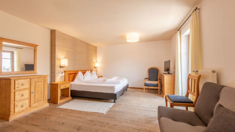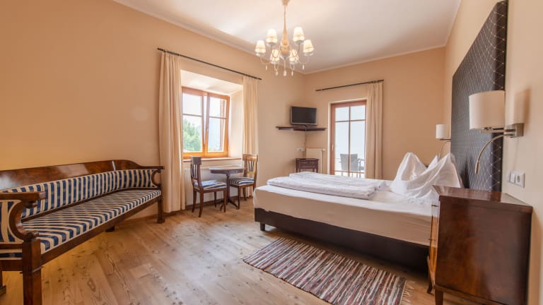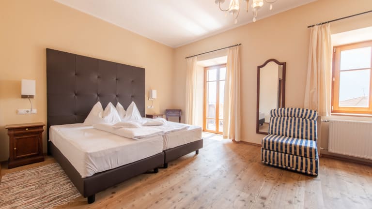 Die Doppelzimmer sind individuell und geschmackvoll mit eleganten Stilmöbeln eingerichtet. Sie sind hell und mit bis zu 36 m² sehr geräumig. Einzigartig ist der Panoramablick vom Zimmer auf die Kulturdenkmäler von Mals. Ausgestattet sind unsere Doppelzimmer mit Bad/WC, Sat-TV, Direktwahltelefon, Radiowecker und Schranksafe. Kostenloses WLAN im ganzen Gebäude. Teilweise verfügen die Zimmer über einen Balkon. Zudem bietet das Hotel auch kleine bequeme ein Zimmer Appartements. Sie sind komplett eingerichtet und verfügen über Küche, Tisch, Stühle und eine Schlafcouch für .Wasser, Abwasser, Strom und Abfallgebühren sind im Preis inbegriffen.