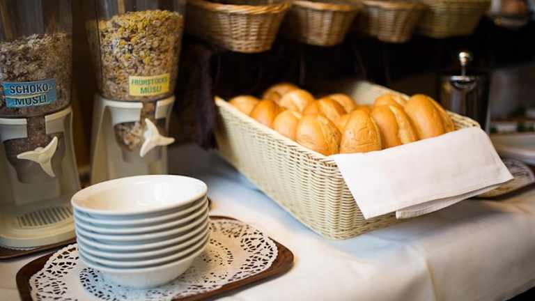 Gäste im Hotel Zur Brücke können ein Frühstück in Buffetform genießen.