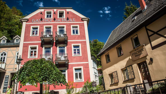 Das Bio-Hotel Zur Mühle befindet sich in Schmilka, einem charmanten Vorort von Bad Schandau. Es liegt direkt am Ufer der Elbe und ist von der beeindruckenden Landschaft des Nationalparks Sächsische Schweiz umgeben. Die Lage bietet ideale Möglichkeiten zum Radfahren und Wandern. In der Nähe des Hotels finden Sie die Toskana Therme Bad Schandau, die nach 6 km erreicht werden kann. Der nächste Bahnhof ist nur 500 m entfernt, so dass Sie problemlos die Umgebung erkunden können.