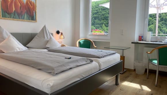 Unser Hotel liegt ca. 150m Luftlinie vom Fluß entfernt mit schönem Blick auf die Mosel. Die Touristen-Metropole Cochem erreichen Sie in nur 3 km Entfernung.