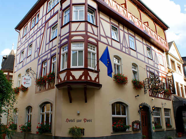 Das familiengeführte Hotel zur Post in Bacharach ist der ideale Ausgangspunkt, um das Mittlere Rheintal zu erkunden. Das charmante Hotel besticht durch seine traditionelle Fachwerkfassade und bietet komfortable Zimmer, ein reichhaltiges Frühstücksbuffet und eine günstige Lage in der Nähe des Bahnhofs und der Ausflugsschiffe.
