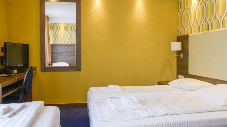Die Zimmer im Hotel Zwanenburg Amsterdam Airport sind komfortabel und bieten Sat-TV für Ihre Unterhaltung.