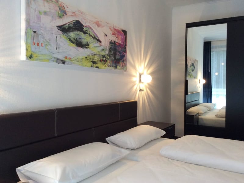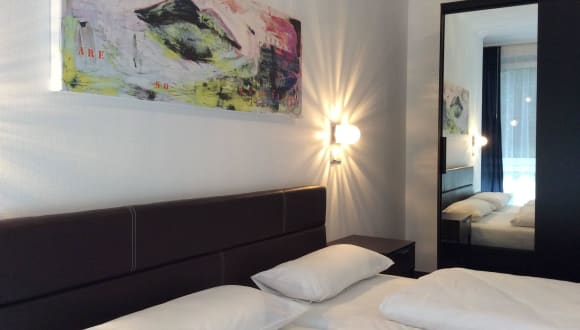 - Bett 140 x 200 cm (Einzelzimmer) - Bett 180 x 200 cm (Doppelzimmer) - Highspeed-WLAN - Fernseher (LED Flat Screen 32") - Kabel TV - Schreibtisch - Flasche Wasser beim Check-in - Vollbad mit Duschkabine oder Badewanne - Haartrockner