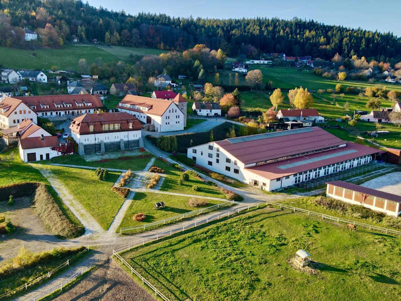 Das Hotelový a jezdecký areál Dvůr Krutěnice ist ein charmantes Hotel auf einer Pferdefarm, das mit einem eigenen Restaurant und kostenfreiem WLAN überzeugt. Hier können Sie Reitaktivitäten genießen und im Wellnesscenter entspannen. Die Zimmer sind gemütlich eingerichtet und einige bieten ein eigenes Bad. Es gibt auch Gemeinschaftszimmer mit einer Gemeinschaftsküche und Lounge. Das Restaurant serviert ein köstliches Frühstück sowie tschechische Spezialitäten. Die Unterkunft bietet eine Vielzahl von Aktivitäten wie Minigolf, Schwimmen im Außenpool, Tennis und Sportfischen. Entspannen Sie auch in der Sauna oder bei einer Massage. Der Garten mit Terrasse und Kinderspielplatz lädt zum Verweilen ein. In der Umgebung finden Sie Rad- und Wanderwege sowie Sehenswürdigkeiten wie den Aquapark Horaždovice, den Mystic Skatepark Sušice und die Burg Rabí. Kostenlose Parkplätze stehen zur Verfügung.
