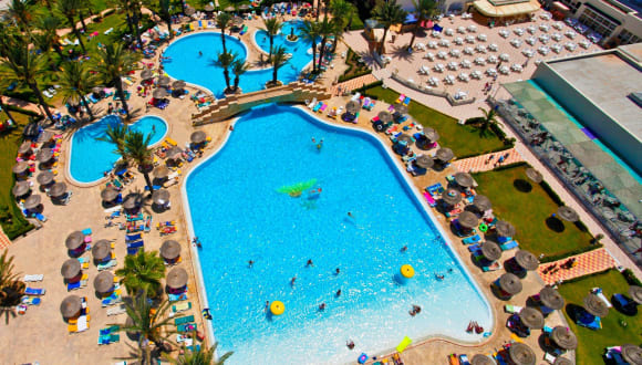 Das Hotel Houda Golf Beach & Aquapark ist ein familienfreundliches Hotel direkt am Sandstrand. Mit seiner weitläufigen Anlage, den zwei Pools und den Wasserrutschen bietet es Spaß und Entspannung für die ganze Familie. Die Zimmer sind komfortabel und bieten einen Balkon mit Blick auf den Garten oder den Pool. Das Hotel verfügt über drei Restaurants, in denen Sie sich kulinarisch verwöhnen lassen können. Für Kinder gibt es einen Miniclub und einen Spielplatz. Sportbegeisterte können sich im Fitnesscenter auspowern oder verschiedene Wassersportarten ausprobieren. Entspannen Sie im Wellnessbereich oder nehmen Sie an den Tanzkursen teil. Das Hotel bietet zudem verschiedene Unterhaltungsprogramme für Groß und Klein.