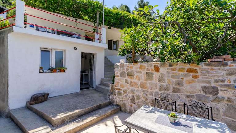 Das House Herta bietet einen gemütlichen Sitz- und Essbereich, eine komplett ausgestattete Küche mit Backofen und Kühlschrank sowie ein Badezimmer mit Dusche. Warmwasser wird über Solarkollektoren erzeugt und es gibt eine Außendusche, die direkt von der Sonne erwärmt wird. Von der möblierten Terrasse aus können Sie den Blick auf die Adria genießen und die idyllische Atmosphäre der Umgebung auf sich wirken lassen.