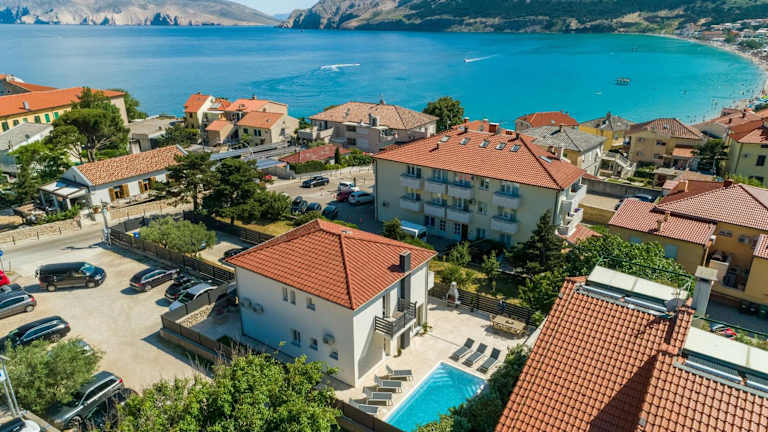Die Unterkunft befindet sich 1 km vom Strand Helena und 1,6 km vom FKK-Strand Bunculuka entfernt. Der Yachthafen Punat ist 17 km entfernt. In unmittelbarer Nähe liegen die Baška Bus Station, die Promenade Baška Riva sowie der Baška Port. Der Flughafen Rijeka ist 44 km entfernt.