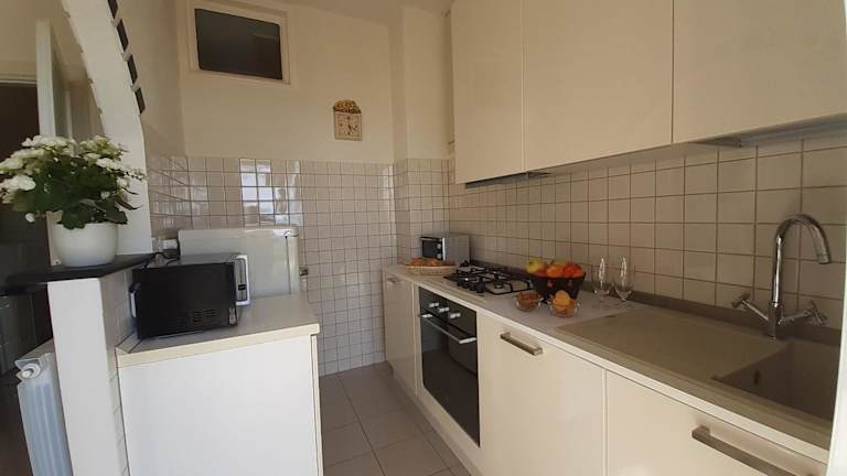 Die Ferienwohnung verfügt über zwei Schlafzimmer, eine Küchenzeile, die mit einem Kühlschrank und einem Ofen ausgestattet ist, sowie ein Badezimmer mit einem Bidet, einem Haartrockner und einer Waschmaschine. Gegen Aufpreis können Handtücher und Bettwäsche bereitgestellt werden.