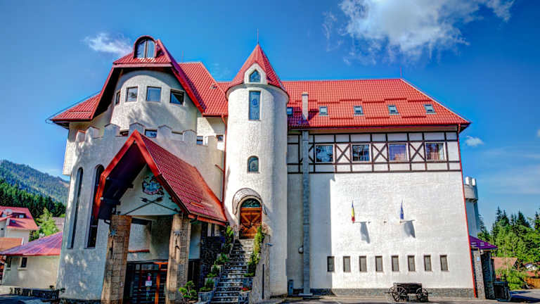 Das House of Dracula Hotel in Poiana Brașov ist ein einzigartiges Hotel mit Blick auf die Karpaten. Es bietet seinen Gästen ein Restaurant mit Weinkeller, eine Bar und einen modernen Wellnessbereich. Die Zimmer sind mit mittelalterlichen Elementen und modernen Annehmlichkeiten ausgestattet. Das Hotel liegt in einem Skigebiet und bietet Minibusse zum Ausgangspunkt der Skipisten. Es ist der ideale Ort, um die Schönheit der Natur zu genießen und die nahe gelegene mittelalterliche Stadt Brașov zu erkunden.