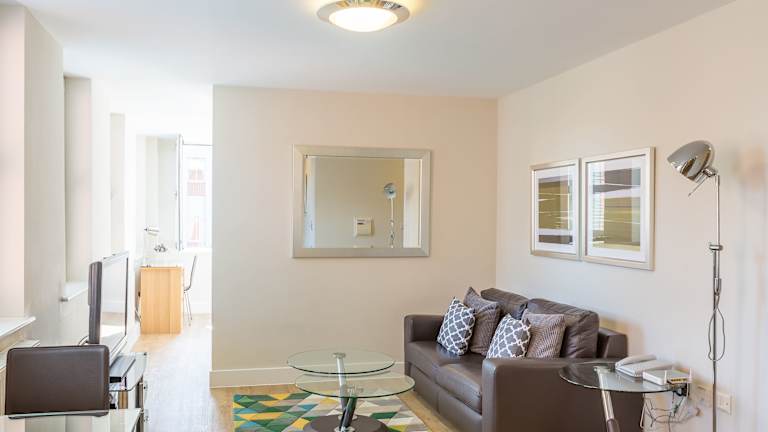 Jedes Apartment und jede Suite ist mit einem Wohnbereich, einem TV, einem DVD-Player und einem Soundsystem ausgestattet. Weitere Annehmlichkeiten umfassen einen Kühlschrank, einen Geschirrspüler sowie eine Waschmaschine/Trockner. Ein wöchentlicher Reinigungsservice mit frischer Bettwäsche und Handtüchern wird angeboten.
