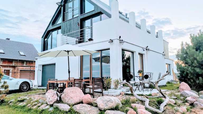 Die Unterkunft befindet sich in Osłonino und bietet einen eigenen Strandbereich. In der Nähe gibt es Möglichkeiten zum Fahrradfahren und die Entfernung zu lokalen Sehenswürdigkeiten wie dem Hafen von Gdynia beträgt 17 km und zur Werft Gdynia 20 km. Der nächstgelegene Flughafen ist der Lech-Wałęsa-Flughafen Danzig, 46 km entfernt.